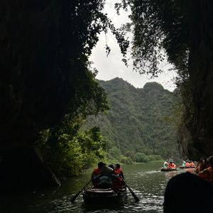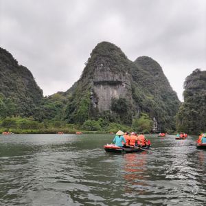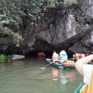 数人乗りのボートが列をなし、いくつもの洞窟を川下っていくのはなかな壮観でした。ハノイの前に置かれた都、ホアルーもコースにはいっていますが全体としてのんびりした田園のイメージです。日本では見られない浸食によってできた奇岩群は一見の価値ありです。陸のハロン湾と呼ばれているようですが こちらのほうが変化があり退屈しないかもしれません。食事もツアー中に提供されるものとしてはおいしいと思います。主催会社は日本人対象に運営している会社のようです。バスなどは日本語表記された自社所有のようで探しやすいし全体として日本人向けに設定されているのは安心できます。日本語のレベルはこんなもんかなというレベルです。