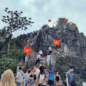 ムア洞窟の階段を登るのはかなりきつかったです。階段500段はまだなんとかなりますが、頂上の龍の先?が本当に危険すぎます。登るのまったくオススメできません。階段はまだ道幅が広く、安心ですが、龍の先当たりは道が狭く(狭いというより道ではない。ボコボコの岩。)岩がスベスベになっており、かなり危険です。特に外国人は平気で無理やり割り込んだり、譲り合いがほぼないので、かなり強い意志を持たないと危ないです笑