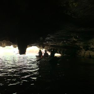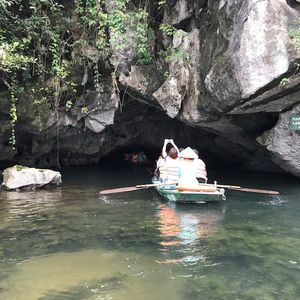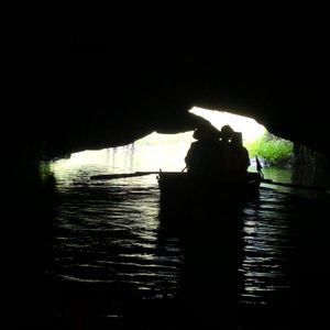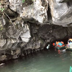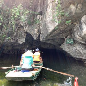 「タムコック」のとはベトナム語で3つの洞窟という意味だそうで、石灰洞窟をくぐっていきます。