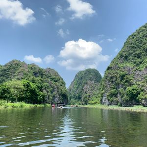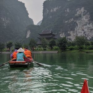 タムコックの景色は美しかったです。稲刈りはすでに終わっていたので、稲穂の色を楽しむことはできませんでしたが、それでも両側の高い山?岩?と穏やかな流れの川と器用に足で漕いでくれるおばさんの船とを楽しむことができました。途中、雨が降ってきてしまいました。するとおばさんが橋の下に船を進めて雨宿りをしてくれました。しばらくしたら止むのかと思いましたが、結局雨は上がりませんでした。仕方なく雨の中戻ることになりました。サイクリングが楽しいと聞いていたので楽しみにしていましたが、できませんでした。それが残念で「最高でした」にできませんでした。天気は仕方ないですね。帰りは、ガイドさんのおすすめのベトナムレストランの前でおろしてもらいました。そのレストランがまた、すごく良かったです。
