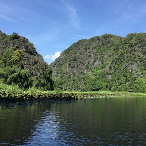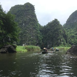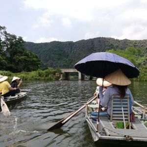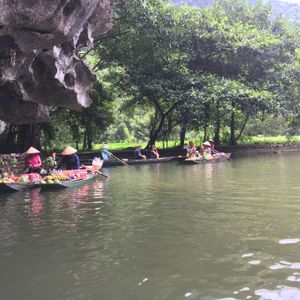 2度目のベトナム旅行、初のチャンアンクルーズでした!8月下旬の雨季、真夏時期で暑い中でしたが、少し雲ってるかな?くらいの丁度良い気候の中、日傘をさしてゆったりと、小舟に乗りながらのクルーズでした!奇岩石も絶景でしたが、水が澄んでてとても綺麗!鍾乳洞をくぐりは時は、頭すれすれで、スリリングもありながら、暗い鍾乳洞を抜けて、光差す緑溢れる外に出た瞬間の開放感、絶景がまた一段と素敵でした!漕いでるのは女性で汗だくになりながら漕いで頂きました!見どころスポットを教えてくれたり、ゆったりしたいかた、ハノイに来たら一度は体験をおすすめにします。またこの日のガイドさんはとても日本語が上手く、説明も上手で、観光だけでなく、旅行全般の事、丁寧にお話ししてくれました!母と娘2人、ガイドさんとドライバーさんの貸切ツアーでした!
