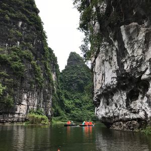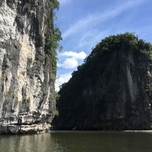 写真で見ると広がった田舎の川を舟で行くイメージでしたが、実際は大きな切り立つ岩山の周りの川を小舟でゆったりと回る感じです。