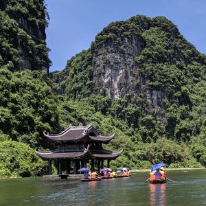 ホアルーは1010年にハノイへ遷都される前の古都です。ニンビン省が中国から独立して最初に建てた王朝の跡地が残っています。 そんな歴史的背景を学びつつ、陸のハロン湾と呼ばれる複合景観がみられるタムコックやチャンアンと合わせて手漕ぎボートでのゆったりとした川下りクルーズツアーをお楽しみいただけます。 なかでもチャンアンは2014年に自然・文化複合遺産として複合景観が世界遺産登録されました。キングコングの撮影舞台でもあり、人気が急上昇している注目エリアです。ハノイから車で2時間で行けるというアクセスの良さもポイントの1つ。