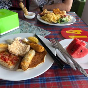 お昼は名物のヤギ肉。臭みを消すために香草も使ってあり、あまり匂いは気になりませんでした。歯ごたえがよいお肉という感じです。品数が多く残してしまいましたが、わかめスープにおこげを入れて食べる料理が1番おいしかったです。昼食はツアー参加者みんなで1テーブルで食べます。気を使いますし、テーブルも非常に小さく食べにくかったですが…こんなものでしょう。
