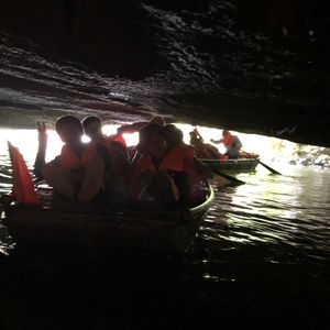 小舟クルーズは約2時間、炎天下で暑かったですがいくつも洞窟の中を通過し日本ではできない体験でした。1週間前くらいに台風が通過したため水量が多くなっていたこともあり、洞窟を通過するときは頭を下げていないとぶつかってしまうくらい狭くなっていましたがそれもスリルがあり良かったです。