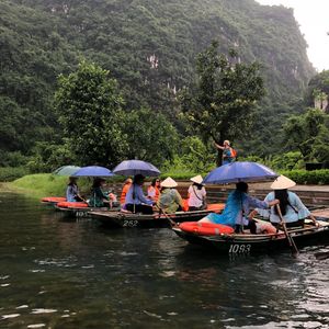 ハノイ滞在の目玉にハロン湾のツアーを検討していた際に写真で見た風景に惹かれて、両方参加することにしました。結果、参加して大正解。ハロン湾には世界遺産らしいダイナミックさがありますが、タムコック川は小舟でゆっくり進むので、見える景色の変化や風、音、匂いを感じられます。どちらか1つを選ぶなら、こちらを選びますね。ツアーは英語ガイドと日本語ガイドがいて、バスの中もインタナショナルな雰囲気で楽しめました。ハノイを訪れたら、行くべきです!