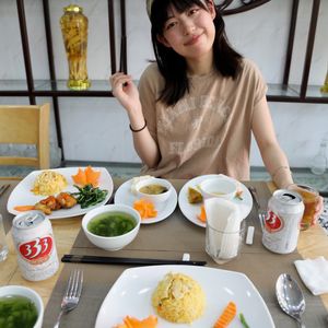 朝8時半にガイドのスさんにホテルに迎えにきていただきました。ホアルーに着いたのが10時過ぎくらい。古都の歴史や街並みを丁寧に案内していただきました。とても暑い日だったので(40度オーバー)水牛はスキップさせていただいてちょっと早めのランチをいただきました。ニンビン料理は日本人にも合う味付けです。山羊の肉がビールととても合いました。食後は車でニンビンに移動。手漕ぎボートに乗って(ガイドさんはお留守番)川下り。娘と僕の2人だけだった、かつボートを漕いでいただいたおじさんがとてもパワフルで、通常2時間近くかかるルートを30分ほど早く回ることができました。とても暑い日だったので正直助かりました。途中のフォトスポットでは丁寧に何枚も写真を撮っていただいて大満足。おじさんには2人分 30k Dong (600円くらい)のチップをお渡ししました。生活がかかってるのでここはきっちり払いたいところです。ハノイに戻る途中スさんにおすすめのスパとブンチャーのお店を聞きつつ4pmくらいにはホテルに戻りました。大満足の1日でした。