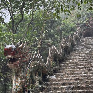 ムア洞窟の階段を登るのは、なかなか大変でしたが、上から見る景色は素晴らしかったです。でも、降りる方はちょっと怖かったです。川下りは、船がたくさん出ていてぶつかりそうになったりしましたが、自分でオールを使って船を漕いだりできて、素晴らしい景色を見ながら、癒された時間でした。