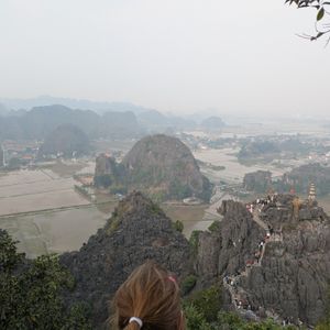 ハロン湾とチャンアン行きで迷いましたが、チャンアンを選択して本当に良かったです。天気は曇りで時々小雨。景色がどんよりしていたのでサイクリングはどうなのかなと思っていましたが、景色を見ながら走るのはなかなか爽快。チャンアン川下りも小舟に乗って約1時間、次々に変わる景色に飽きることなく楽しめました。ムア洞窟の500段は人が多すぎて頂上はごった返していましたが、景色もよく晴れていたらと思うとそれだけが残念。
