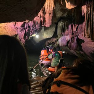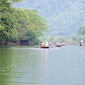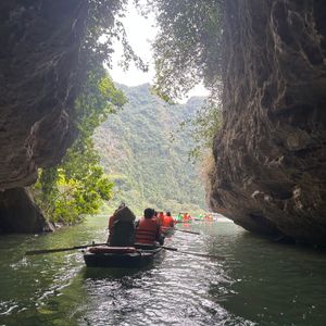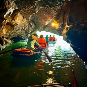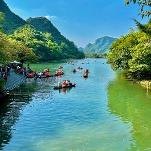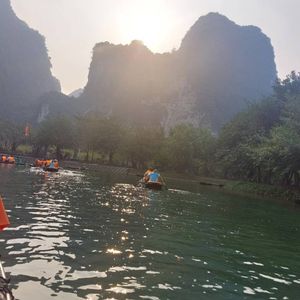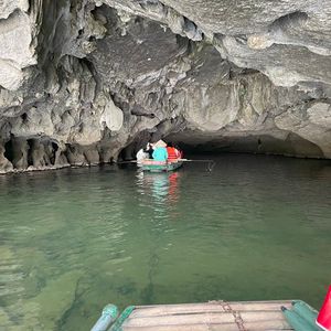 豪華なリムジンバスで現地まで行き、最高の景色を楽しみながら、おばちゃんの漕ぐ小舟に1時間弱揺られる。鍾乳洞があったり、奇岩に見とれているうちにあっという間に終わりました。サイクリングしながら、お寺を見学し、食事も昼夜ついてコスパが素晴らしいツアーだと思います。特に夕飯に食べたおこわがとても美味しかった!ガイドさんも親切でとても良かったです。