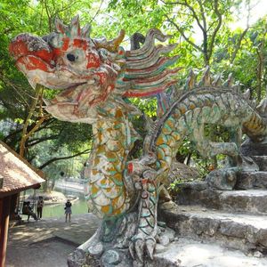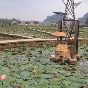 こちらは洞窟とはいうももの、500段の狭い階段を上っていくとチャンアンの風景が素晴らしく望めます。ガイドさんは途中まで行ってくれましたが、頂上までは友人二人と登りました。とにかく頂上は人も多く、急で危険ではありましたが、龍の頭を触ることができて、満足です。ふもとには一面の水連が咲き乱れ、きれいな写真も撮れました。この辺りはリゾート地のような感じに思えました。