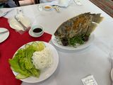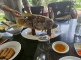 名物の象耳魚は昼、夜の2回で予定されていましたが、昼は別のメニューを出してくれて夜だけ象耳魚でした。メニューがかぶらないように配慮していただきありがとうございました。象耳魚はレストランスタッフさんが取り分けて生春巻きに加工して提供してくれました。
