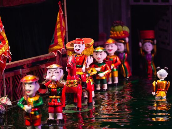 入口に大きな水上人形がいるので、入場前にまずは写真撮影を忘れずに♪もともとは北部の農村の大衆娯楽だったため、世界各国から観光客が訪れてくる現在もベトナム語のまま公演を続けています。シニカルな動きとストーリーをお楽しみに!