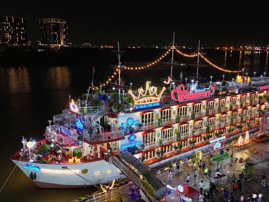 きらびやかな船に乗り込んで、サイゴン川のディナークルーズへ。船内のイベントや夜景、お食事をお楽しみください。