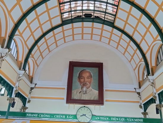 1886~1891年に創建された駅のような建物内にある郵便局にはサイゴンの時代の地図や昔の切手など、興味深い品がたくさんあります。