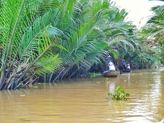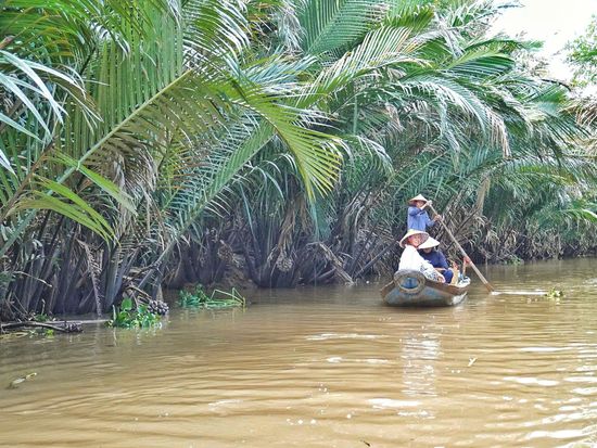 ホーチミン観光で人気のメコン川クルーズへ!手漕ぎボートに乗ってメコン川を進みます。地元の方の生活風景の見学やベトナムの大自然をお楽しみください。