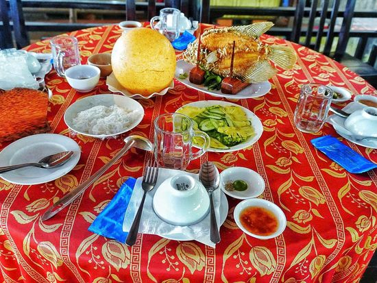 クイ島到着前、フーン島のレストランにて、象耳魚のフライ、丸揚げ餅など、名物料理をお楽しみ下さい。