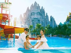 ベトナムの初代国王、フン・ヴォン王の顔のオブジェで知られるスイティエン公園内のウォーターパーク。暑さを忘れて遊びましょう♪