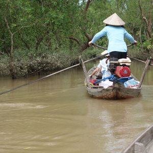 朝、宿泊ホテルまで迎えに来てくれて小型バスでメコン川へと出発。ホーチミンからメコン川まで約2時間。日本語堪能なガイドさんがベトナムのことを説明してくれたり、きれいな風景をみたり、あっという間に到着。