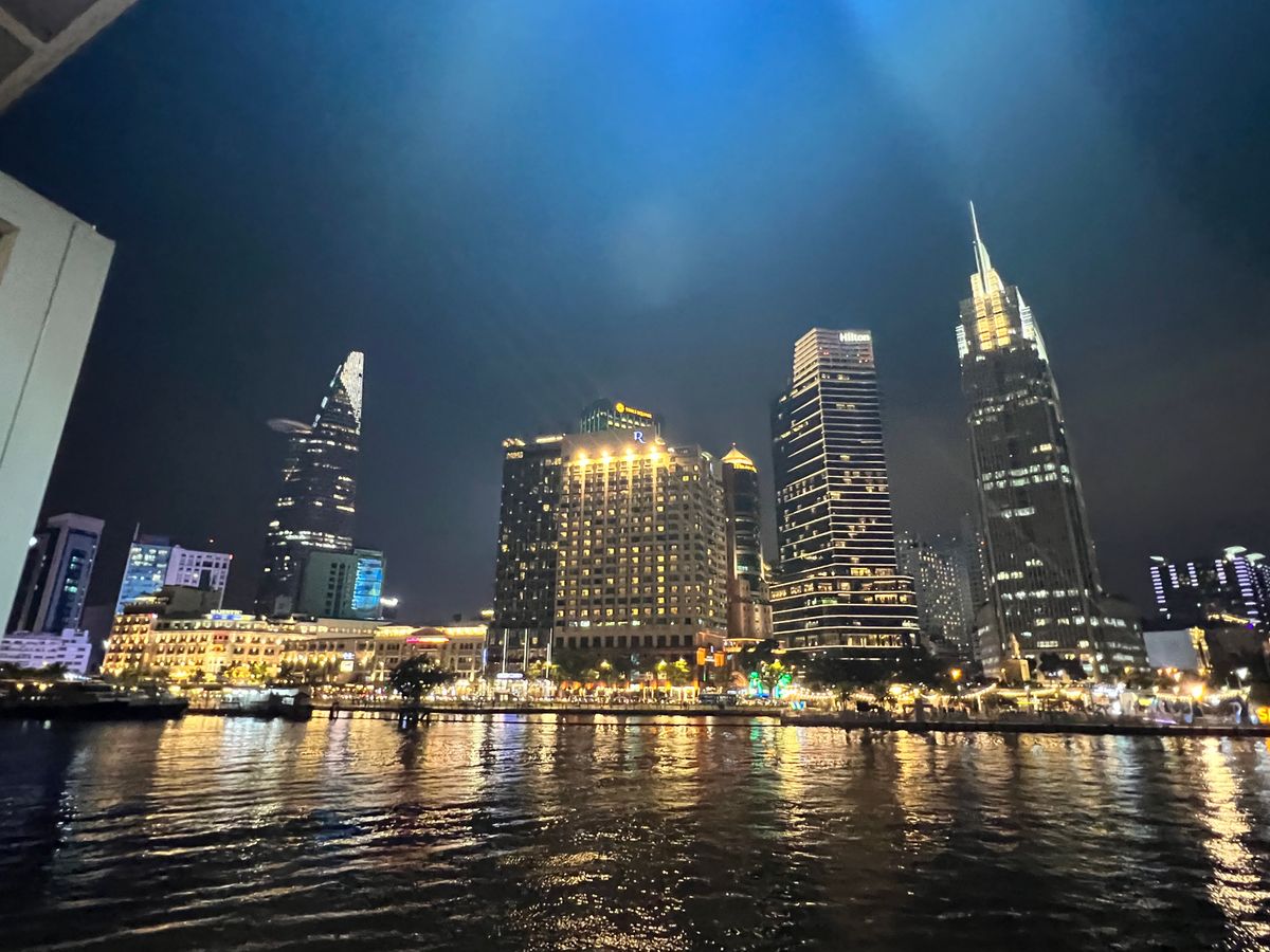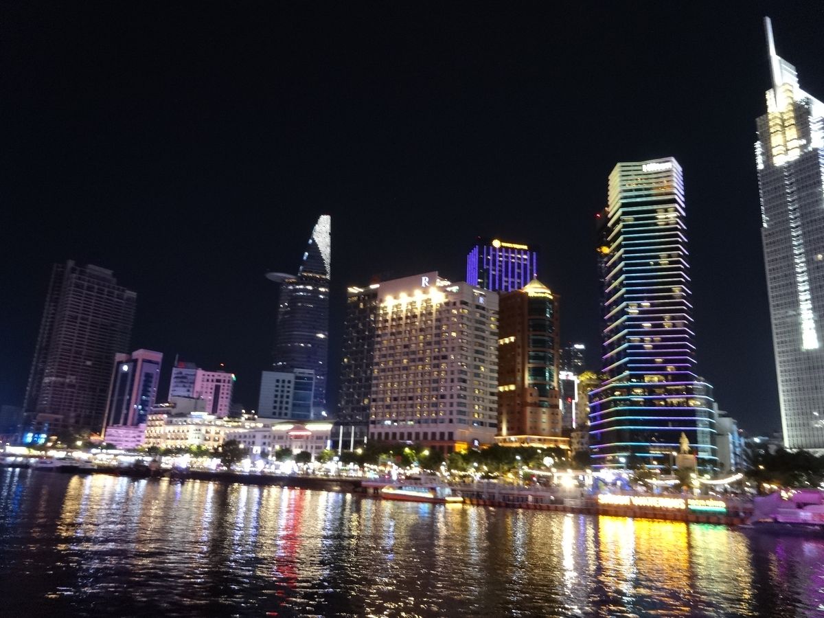 同じ場所からいくつかの船が出ていますが、この船は最もゆっくり進みます。他の船よりおそらく大きいのですが、1区の夜景エリアは停まっているのか進んでいるのかわからないくらいゆっくりです。また、最近できたランドマーク81の方まではいかず、ロッテホテル付近でUターンします(折り返しは他の船も同じあたりのようです)。
