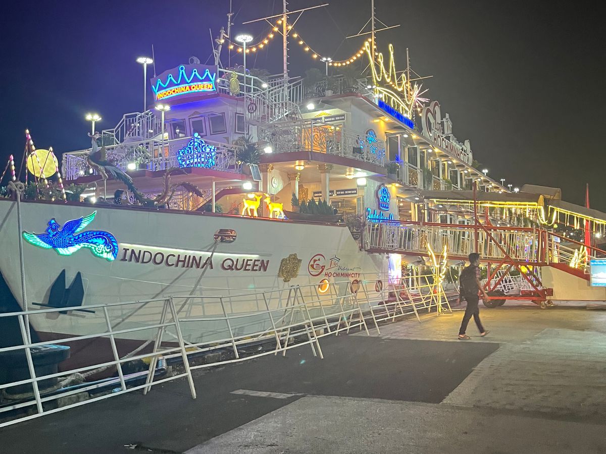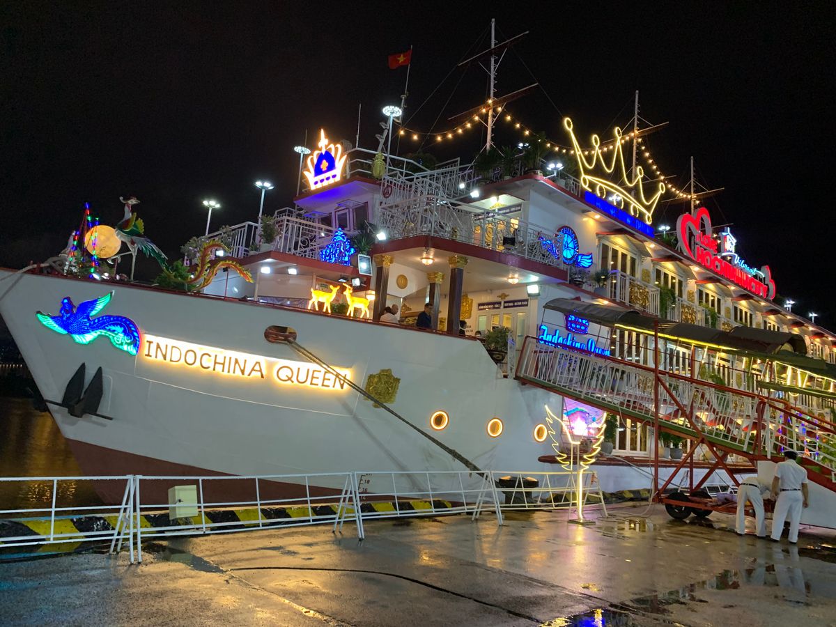 船形の良い大型船インドシナクイーン号で、食事も美味しく、夜景は美しく、乗船時間も程よく満足しました。