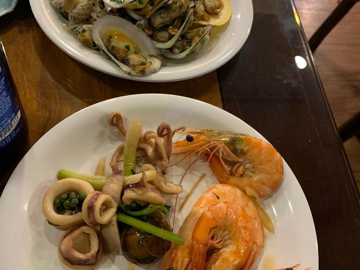 食事はバイキングスタイルで、新鮮なエビの酒蒸し?がとてもプリプリして美味しかったです。