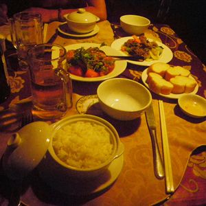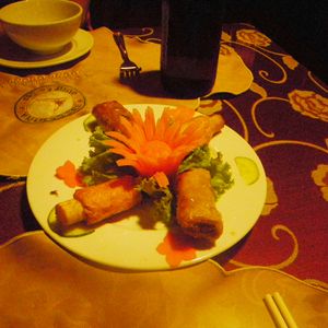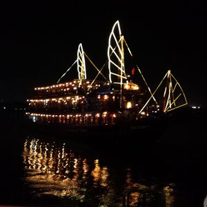 夜景が綺麗だっただけでなく、ベトナムの民族舞踊や、手品などでディナー中楽しませてくれました。料理も日本人の好みに合うもので、おいしかったです。食後に甲板にでて夜景を楽しみました。