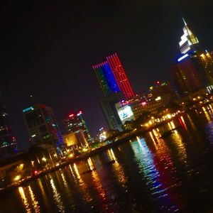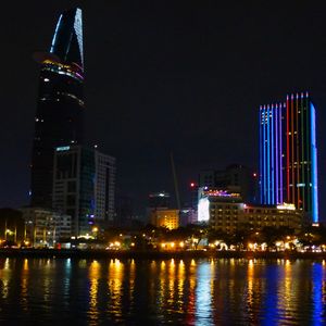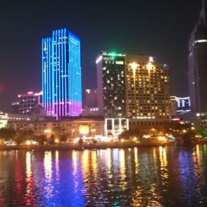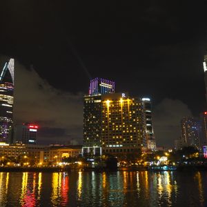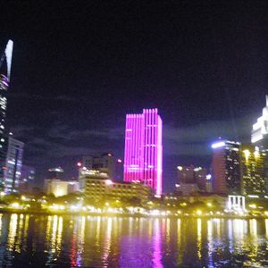 ディナークルーズ船から眺めるホーチミンの夜景は、サイゴン川の水面に映し出されるビル群のライトアップと相まって