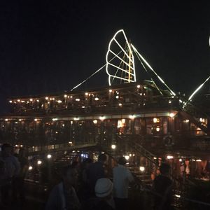 当日雨が急に降る悪天候でしたが、集合場所から船着き場までいく間に雨も止みラッキーでした。船も外観が電飾で飾られ綺麗な船でした、