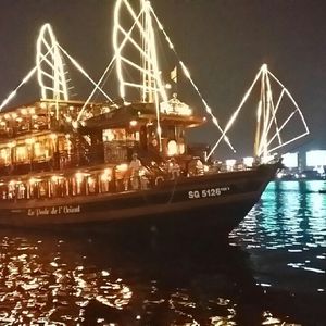 ゴウジャスなクルーズではありませんが、なかなか楽しめました。クルーの対応も良く、料理も出てくるのに時間がかからず、若い人でも大丈夫な量も有りお腹いっぱいになりました。日本人向けなのか、美味しく頂かせてもらいました。乗船客のほとんどが日本人なので、ある面安心ですが、船内は日本語が飛び交い異国情緒には欠けた気がしましたが、ディナー付のクルーズでこの価格はお得感あります。プラス送迎付なのが嬉しい!