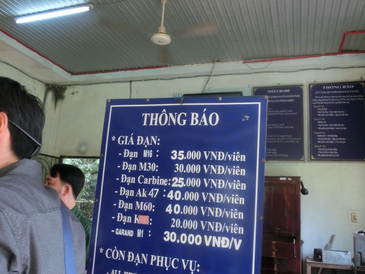 TNKオフィスに近いホテルだったのでホテルへの迎えはなく、オフィスに集合でした。バスが来て日本人はバスの後方へ座り、日本語が話せるベトナム人のガイドさんの説明を聞きます。所々わかりづらいですが、ジョークを交えて上手に話してくれます。現地近くなったらバスの中で入場料11万ドンの徴収。6歳の子供は身長140センチ以下だったので、入場料はいりませんでした。中では、ビデオを見たり、実際にトンネルの中に入ったり、結構歩きます。射撃は旦那と高校生の息子が体験しました。6歳の息子と私は休憩所でアイスを食べて待っていました。年末の土曜日で施設内が混んでいたので、帰りのバス出発が予定より遅くなり、ホーチミンへ戻ってきたのは15時頃でした。お腹を満たすものは、施設内で試食をするタピオカ芋のみなので、帰りのバスの中で食べる少々のおやつ程度は持って行った方がいいかもしれません。行ってよかったです。