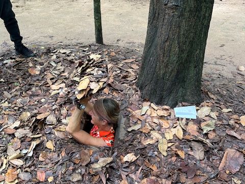 クチトンネルや隠れるための小さな穴に入り、歴史で学習しただけのベトナム戦争を、多少なりとも体験として学ぶことができました。