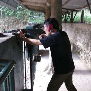射撃場が併設されていてAK47やM16なども10発、3,000円ほどで体験できます。AK47を撃ちましたがの音と反動に驚きました。