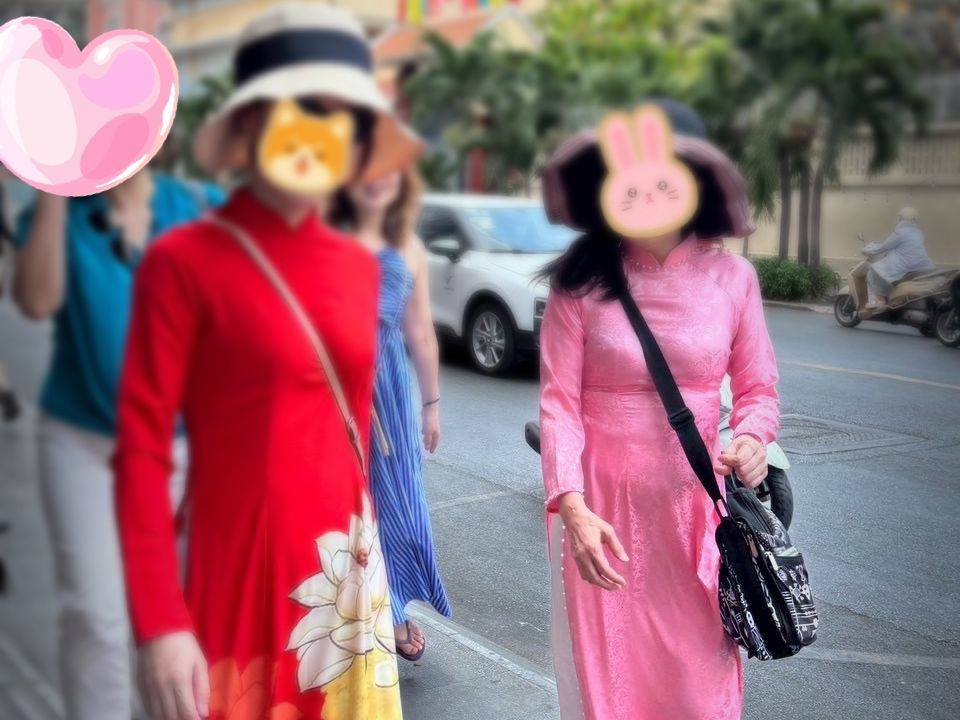 行き帰りの送迎があり、観光スポット間もGrab移動なので、暑い中でも快適に楽しむことができました。かわいいアオザイが着られて最高です。男性陣は、アオザイの種類が少なくて少々不満だったようです(^^;