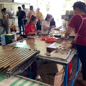 15åçšåºŠã§å°çããããããåãã³ã³ããããã£ã³ãã£å·¥å Žã®èŠåŠãããŸããããã®åŸã¯ãã«ãŒãã®è©Šé£ãããŠãããããã¡ã³ã³å·ã®å·äžãã§ãã4人äžçµã§å°èã«ä¹ã蟌ã¿ãŸãããè¹é ããã2åå±