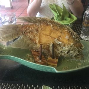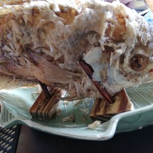 夕食のエレファントイヤーフィッシュは、目の前で、春巻きにしてくれ、さっぱりと柔らかな身で美味しかったです。