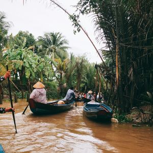 色んな所を回って、さあメコン川クルーズ、船に乗った瞬間に土砂降りの雨。ずぶ濡れ。ベトナムの三角日傘とビニールシートを貸してくれたが効果なし。土砂降りでも小舟は避難もしないで進む。何にも見てない。見えない。着いたらおばちゃんが大きな声でチップを要求。ちょっと興ざめでした。