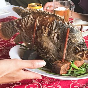 今まで他店で名物の象魚を食べた際、骨っぽくてたんぱくだなとしかと感じたことがなかったのですが、美味しい。揚げ春巻きも満足。