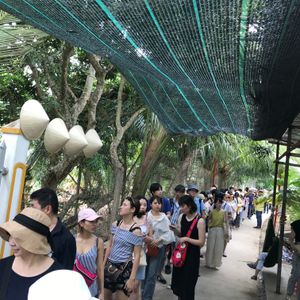 ベトナムといえばメコン川を渡らなかったら勿体ないなぁ!ということでこのツアーを申し込みました。8:00頃にお迎えが来てバスは結構な人数の参加者の方がいました。メコン川の辺りまで1時間ちょっとかかるのでガイドさんのお話などを聞いたりして少し寝たりもして、あっという間にメコン川のあたりに到着。船に乗り換えて島へ渡ります、島へ着いたら蜂蜜見学、ミツバチと写真を撮ったり蛇と写真をとりました、お茶をサービスしてくれて蜂蜜などの販売が始まります。そのあとまた少し歩きココナッツのチョコを作ってるところでまたチョコのお土産を見ます、300円程、また少し歩きガイドさん曰くうるさい歌をフルーツのサービスを食べながら歌を聞きます、それが終わったら小さな船に乗り換えてメコン川を何キロか先程の船のところまで下っていきます。途中雨が降ってきてみんなびしょびしょに…先程の船に乗り換えてココナッツジュースが配られました、ぬるくて飲みにくい…船を降りてバスで移動しましてランチタイムです、最初の一枚はお店の方が春巻きを巻いてくれます、しかしその春巻きはカチカチで水分ゼロ、ずっと出されて放置されていたのでしょうか…プラスチックを食べているようでした、6名くらいの相席で大皿で出されるので気を使ってしまいみんな食べづらそう。像耳魚が有名らしいけど泥臭くてみなさん二口目は食べずに残っていました、ランチはほとんどどの品もみなさん残してしまってた…でもメコン川まで自力で来るのは大変だと思うしエアコンの効いたバスで移動は楽チンでした、ガイドのフアンさんの仕切り方も素晴らしく全体で無駄なく回れることができました!いい体験ができてよかったです!ありがとうございました!