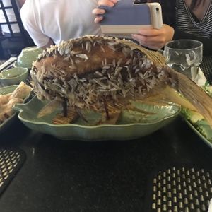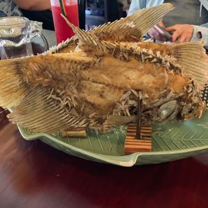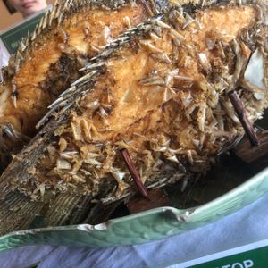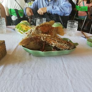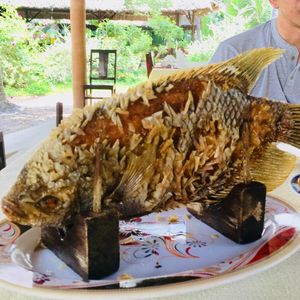 昼食では名物の象耳魚(エレファントフィッシュ)を頂くことができます。
