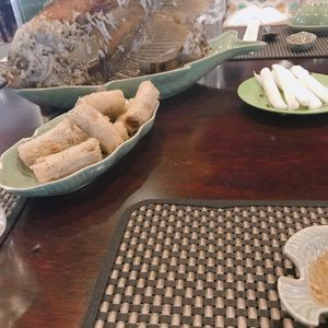ライスペーパーで包んで食べますが、1回目は店員さんがやってくれますので、やり方を見ておけば2回目は自分でできます。