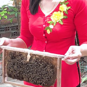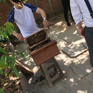 蜂の巣をもっての写真撮影。蛇との写真撮影は、貴重な体験でした。