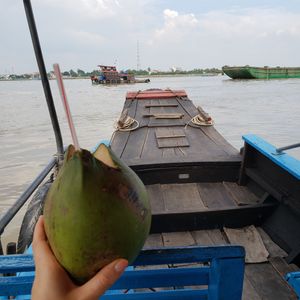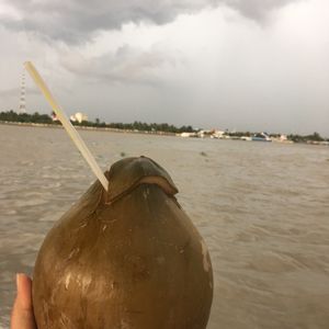 ●15:30 岸に戻る船に乗るとココナツにストローを指したジュースが振る舞われる。飲みながら元の船着場まで帰る。