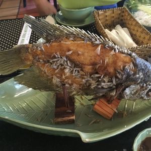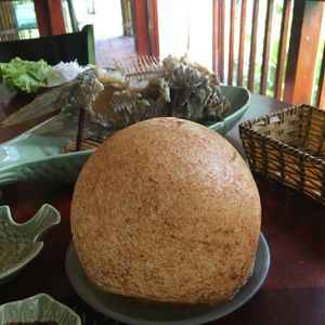 その後のランチタイムでは、エレファントフィッシュと言う魚の姿揚げとライスボールと言うまん丸に膨らんだおもちのような定番料理をたらふく食べ、とても満足でした。