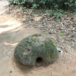 というわけで、あっという間に目的地のクチトンネル到着、各国から?大勢の方で賑わってる中を修学旅行生のように40名近くがガイドさんについて歩き、戦争での罠や戦闘グッズを見て、暗く狭い手掘りの地下トンネルを実際歩きます。車中でのベトナム戦争について聞いていたのでよりつい最近までこれらが使用されていたとは・・心が痛むとともに平和を願わずにはいられません☆