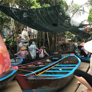 メコン川クルーズは、別のグループは大行列でしたが、こちらで予約しておいたので、すぐにボートに乗れました。ボートの中で写真なども取れて、満喫しました。そのあと、蛇を首に巻いたりして写真を撮らせてくれました。現地の飴工場?の見学をし、ランチ。美味しかったですが、ハエが飛んでいて少しつらかったです。(現地なので仕方ないかなと思いつつ)