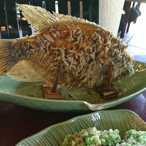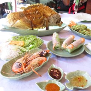 ここから約2時間かけてミトーへ。途中象耳魚のランチしました。ここで生春巻きを自分で包んで食べます。おいしかったです。