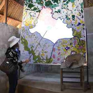 道路を横断するトンネルをくぐると、クチの歴史を上映する小屋がいくつも見えてきます。