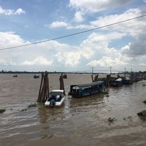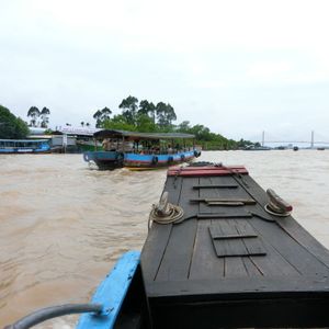 ミトーに到着すると、木造船でメコン川を横断します。当日は波が高く、メコン川の汚い水しぶきが顔に少しかかったので、サングラスを持参すれば良かったと後悔しました。