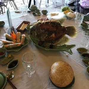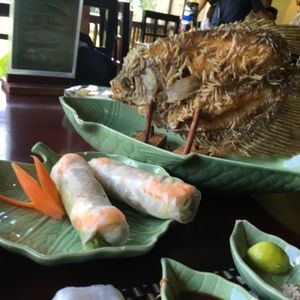 お昼は、象耳魚を一匹とベトナム料理です。思ったより象耳魚が大きく驚きました。食事の量は、少し多かったです。